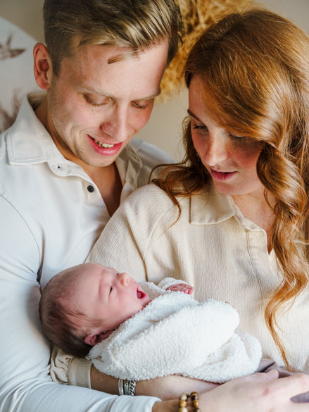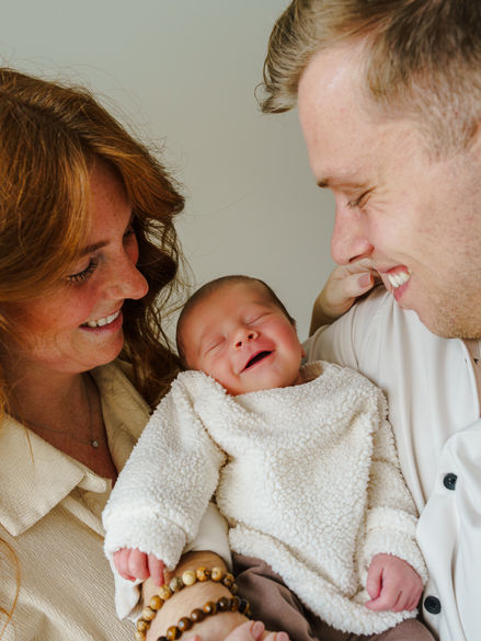 Een newbornshoot vindt plaats als jullie er als gezin klaar voor zijn. Boek je de shoot voor in de eerste drie weken, dan heb je echt de mini fase. De meeste baby's slapen dan nog heel veel, hun huid is vrij van babyacne. Boek je de shoot later, denk aan vanaf week 4, is dat natuurlijk niet erg. Persoonlijk vind ik dat leuker! Je hebt iets meer interactie met de kleine en zelf zijn jullie al meer aan de nieuwe situatie gewent.